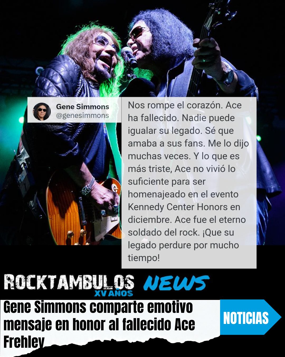 Nuestros corazones están rotos. Ace ha fallecido. Nadie puede igualar su legado. Sé que amaba a sus fans. Me lo dijo muchas veces. Y lo que es más triste, Ace no vivió lo suficiente para ser homenajeado en el evento Kennedy Center Honors en diciembre. Ace fue el eterno soldado del rock. ¡Que su legado perdure por mucho tiempo!