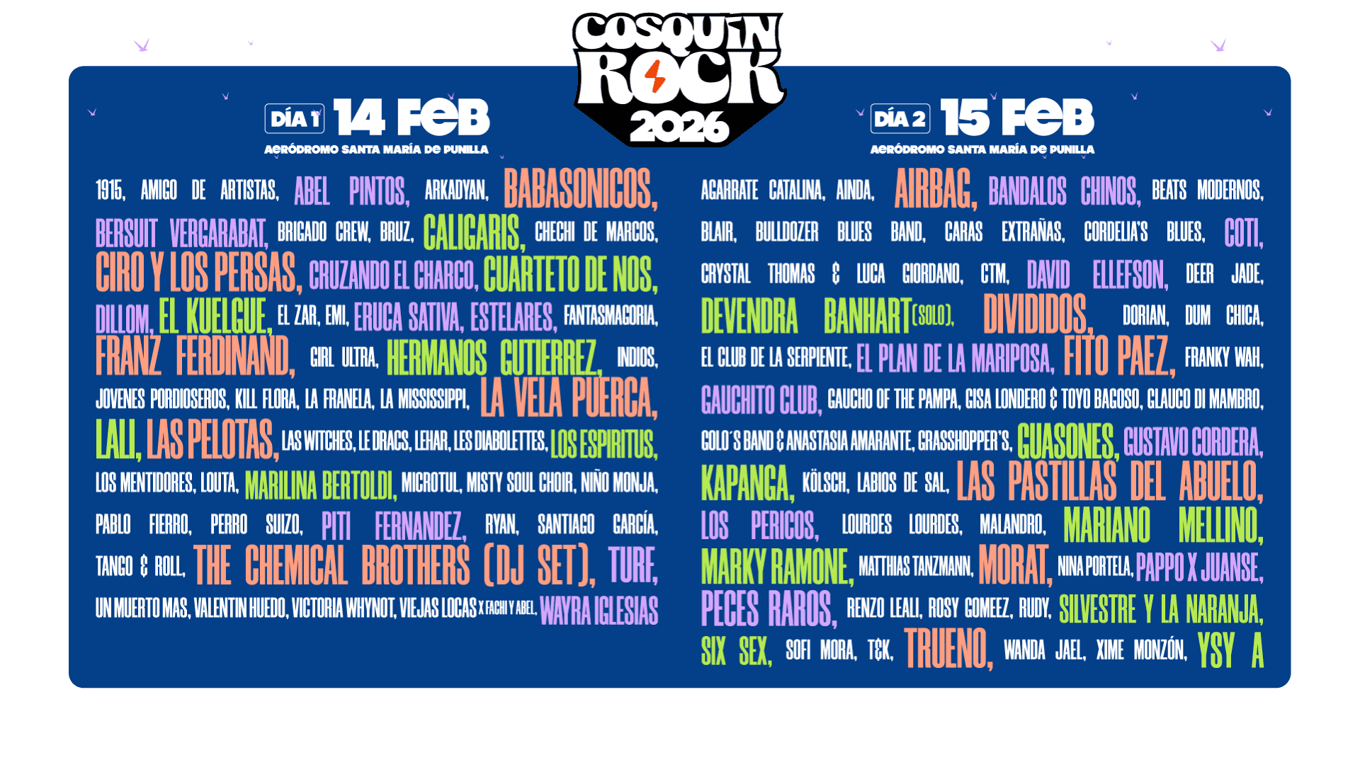 Con grandes nombres nacionales e internacionales, COSQUÍN ROCK revela su grilla 2026ArgentinaNoticias[Eventos] por Javier Brusotti - 11/09/202513/12/2025 Se viene una nueva edición del histórico festival cordobés, con varias figuras internacionales en la grilla.