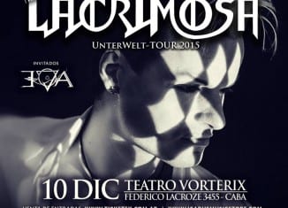 LACRIMOSA vuelve a la Argentina este 10 de Diciembre para presentar su «Unterwelt Tour»ArgentinaNoticiasOXD[Eventos] por Frank Hernández - 29/11/201514/03/2021 Una de las bandas más importantes de la escena gótica mundial regresa a la Argentina este 10 de Diciembre de 2015 para celebrar junto a sus fans sus 25 años en escena. Los alemanes liderados por Tilo Wolff traerán al sur su Unterwelt Tour 2