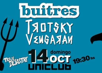 BUITRES y TROTSKY VENGARAN en Buenos AiresArgentina[Eventos] por Frank Hernández - 18/06/201814/01/2022 Se presentarán por única vez y en exclusiva, en el contexto de una “FECHA HISTORICA”, las dos bandas más importantes del punk uruguayo: BUITRES y TROTSKY VENGARÁN.Como invitados de lujo acompañaran en el evento TRAJE DESASTRE, liderado