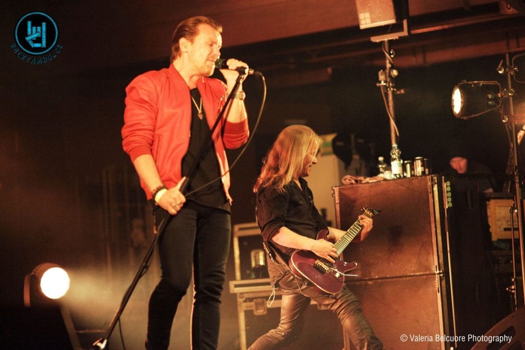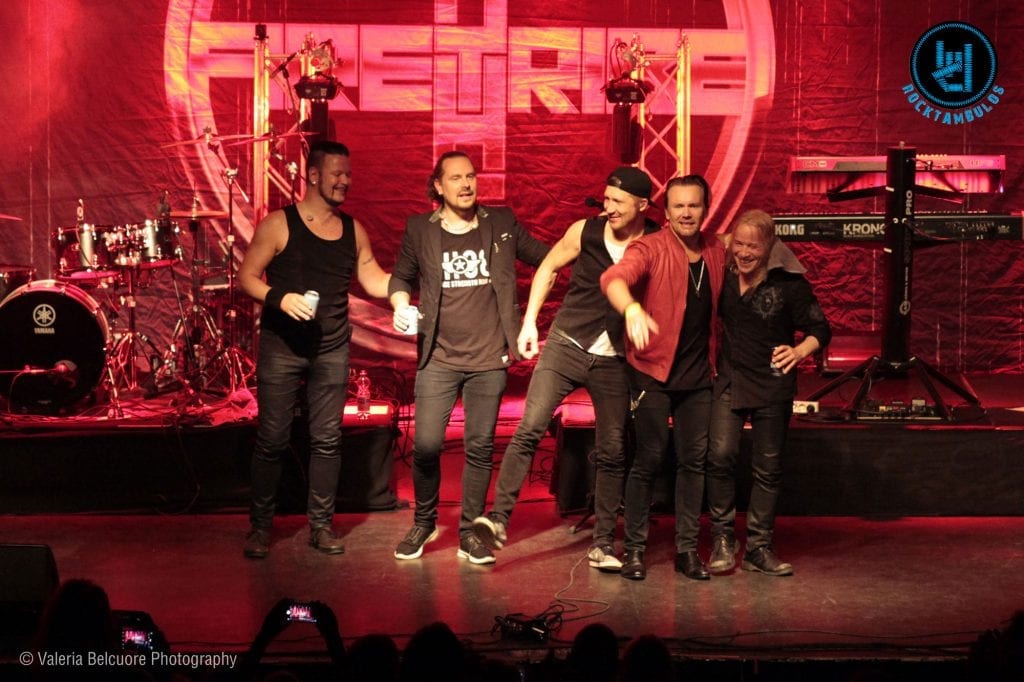 BROTHER FIRETRIBE en Helsinki: Temas soleados y rock ochentoso en el otoño finlandésDestacadaOXDReseñasShows (Así Fue) por Valeria Belcuore - 09/09/201720/02/2025 Cada show de BROTHER FIRETRIBE es una fiesta en la que hay un clima de familiaridad y predominan las canciones de amor y desamor con melodías pegadizas. Esta agrupación de Hard Rock de Finlandia, formada en el 2002, está compuesta por Pekka Ansio Heino en la voz, Emppu Vuorinen (sí, el mismísimo de NIGHTWISH) en guitarra, Tomi Nikulainen en teclados, Hannes Pirilä en batería y Jason Flinck en el bajo. Tienen 4 álbumes en su haber, y aunque todos fueron lanzados a lo largo de los últimos 11 años, son uno más ochentoso que el otro, cada uno a su manera, y todos incluyen un tema de alguna película de aquella década.Sus shows son para mí siempre un momento perfecto para saltar y bailar sin parar ¿y por qué no? ¡gritar un poco también!. Esta vez quise tomar fotos del show para Rocktámbulos, lo cual hizo que durante los primeros temas tuviera que contener mis ganas de moverme, y eso es bastante difícil, especialmente cuando llega «One single breath», un clásico de su primer álbum. Para mí, la música de BROTHER FIRETRIBE da lisa y llana alegría, ¡alegría de vivir! Y creo que mucha más gente debería conocer a esta banda increíble y contagiarse.El año pasado lanzaron «Taste of a champion», primer single de Sunbound, disco que vio la luz este año. Cuando se presentan en vivo suelen tocar un poco más de una hora y en este tour aniversario de los 15 años el setlist está compuesto principalmente por temas del último disco, arrancando con el introductorio e instrumental «Sunbound», seguido de «Help is on the way». Arrancaron esta nueva gira en Marzo, luego de dos años sin tocar en vivo, y el miércoles en Helsinki el set incluyó también «Indelible heroes», uno de los singles del último disco. Luego fue el turno del ya mencionado «One single breath», para después intercalar algunos temas de discos anteriores como «For better or for worse», «Runaways», «I’m on Fire» y «Heart full of fire» con temas del último disco.Cuando empiezan a sonar los primeros acordes del tema»I am rock» es imposible evitar sentir tristeza al saber que el show ya se termina, y en efecto, tras dicho clásico concluyeron su show, como de costumbre.No es casualidad que su último disco se llame Sunbound (algo así como “hacia el sol” o “en dirección al sol”). Definitivamente hay algo de soleado en los temas. En un país como Finlandia, en donde el sol no se ve durante gran parte del año, un disco que emana luz y calor es mucho más que bienvenido, sobre todo ahora que se está acercando la oscuridad. Así que le agradecemos a BROTHER FIRETRIBE por hacer salir el sol con su música y alegrar el alma con cada uno de los shows.Valeria BelcuoreFotógrafa en Rocktambulos Todas las fotos fueron tomadas por Valeria Belcuore para rocktambulos.com / Todos los derechos reservados