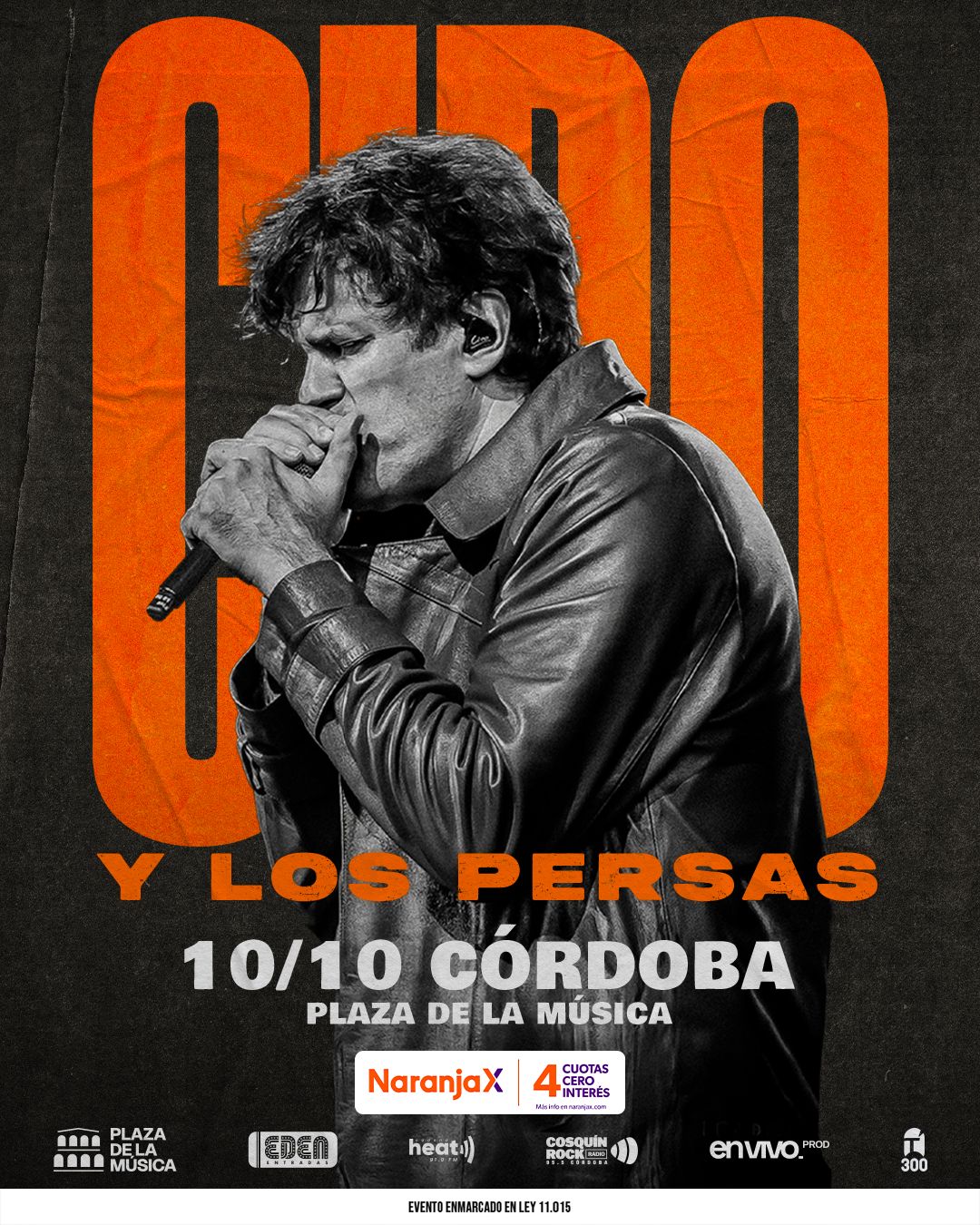 CIRO Y LOS PERSAS se presentará en Córdoba este 10 de octubreArgentinaNoticias[Eventos] por Javier Brusotti - 20/09/202507/10/2025 CIRO Y LOS PERSAS, banda argentina de rock liderada por Andrés Ciro Martínez, se presentará en Córdoba como parte de la gira que celebra sus 15 años de trayectoria. El tour forma parte del cierre de actividades de 2025 y marca un nuevo capítulo en la carrera del también vocalista de LOS PIOJOS, y uno de los referentes del rock nacional.El recital tendrá lugar el 10 de octubre a las 21:00 horas en la Plaza de la Música (Intendente Ramón Bautista Mestre 1150, Córdoba Capital). Las entradas están a $65000 y pueden adquirirse a través de la plataforma Edén Entradas o de forma presencial en Disquería Edén (Obispo Trejo 15, Córdoba Capital).El concierto se enmarca en una etapa significativa para CIRO Y LOS PERSAS, que durante 2025 celebra su aniversario con una serie de presentaciones en distintas provincias del país. En esta oportunidad, el grupo regresará a Córdoba tras el reciente show de LOS PIOJOS en el Estadio Kempes, reuniendo nuevamente a seguidores de distintas generaciones. Desde su formación en 2009, CIRO Y LOS PERSAS ha editado discos como Espejos, 27, Naranja Persa y Guerras (Un viaje en el tiempo), consolidando un repertorio que combina temas propios con clásicos de la etapa de LOS PIOJOS, como “Maradó”, “Tan solo” y “Antes y después”.
