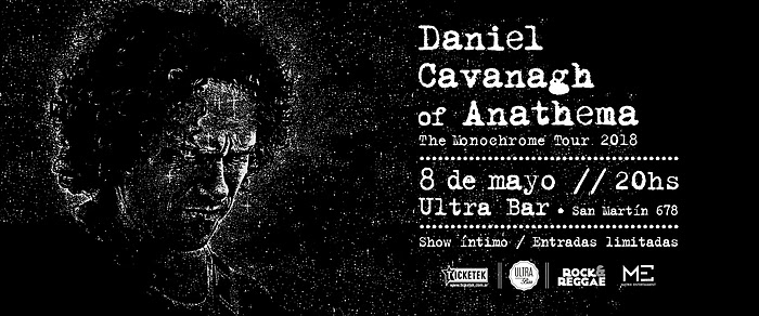 Daniel Cavanagh en ArgentinaArgentina[Eventos] por Frank Hernández - 06/04/201814/01/2022 Daniel Cavanagh, guitarrista y cantante inglés, fundador de la banda ANATHEMA, vuelve a la Argentina para presentar su disco solista Monochrome en un show íntimo imperdible en Ultra Bar (San Martín 678, CABA). La fecha es el Martes 8 de Mayo a partir de las 20 hs y las entradas son limitadas. Se pueden adquirir por sistema Ticketek.“Monochrome es como una versión ambiental oscura en piano del disco Weather Systems de ANATHEMA. Una sensación de una noche a la luz de las velas, evocando la luz del atardecer, como el sol del verano hundiéndose en el horizonte…». dice Danny Cavanagh, quien cree que esa es la sensación que va a sentir la gente cuando le de play a su reciente disco solista y presencie el show de este proyecto.El guitarrista y cantante inglés es un inquieto y talentoso músico. En junio del 2017, editó y giró por el mundo con el disco nuevo de ANATHEMA titulado The Optimist (disco que la banda presentó en Groove el 11 de agosto de 2017); y apenas 4 meses después, en octubre lanzó su nuevo álbum «Monochrome», un disco donde se permite experimentar a otros niveles.Además del show en Ultra Bar de Capital Federal; “The Monochrome Tour 2018” pasará por Brasil, Chile, Perú, Colombia y México. Monochrome es el cuarto disco solista de Daniel Cavanagh. Antes el creador de ANATHEMA había publicado The Passage (2012, libro y CD); In Parallel (2009, junto a la vocalista Anneke Van Giersbergen); y el tributo a Nick Drake titulado A Place To Be (2003).