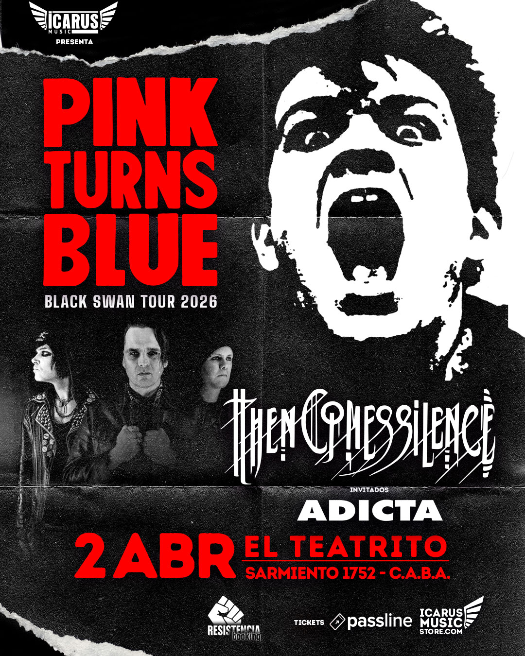 PINK TURNS BLUE se presenta el 2 de abril en El Teatrito (Sarmiento 1752, C.A.B.A). Las entradas se consiguen a traves de Passline y la tienda de Icarus
