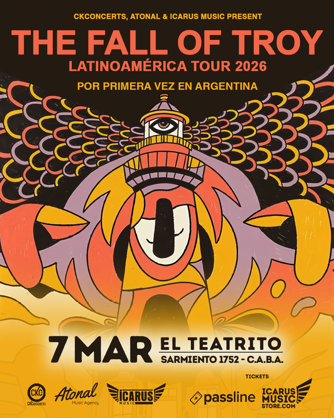 THE FALL OF TROY llegará por primera vez a ArgentinaArgentinaNoticias[Eventos] por Leticia Villalba - 15/01/202607/02/2026 El power trio de rock progresivo y post-hardcore estadounidense se presentará el sábado 7 de marzo en El Teatrito en el marco de su «Latinoamérica Tour 2026».En su debut en Argentina, THE FALL OF TROY anticipa una presentación potente y memorable. Será una noche atravesada por el virtuosismo, la intensidad del rock progresivo y el post-hardcore, en un show que empuja y redefine los límites de la música extrema.La banda asegura un show en vivo demoledor, donde su propuesta compleja se despliega con la misma contundencia sobre el escenario. Será una noche de caos cuidadosamente orquestado, en la que la destreza técnica y la nostalgia se encuentran.Su tema más emblemático, “F.C.P.R.E.M.I.X.”, quedó inmortalizado en el videojuego Guitar Hero III: Legends of Rock, transformándose en un himno generacional. Presenciar esta canción en vivo y otros temas clave del álbum «Doppelgänger», constituye el principal atractivo de su debut. El encuentro con THE FALL OF TROY será el 7 de marzo de 2026 en el mencionado Teatro del microcentro porteño (Sarmiento 1752, CABA).Las entradas ya se encuentran a la venta en la web de Passline con valores de $90.000 (cargos por servicio incluidos). También se pueden adquirir entradas físicas sin cargo por servicio en Icarus Music Store (Aristóbulo del Valle 104, La Boca), de lunes a viernes de 9 a 18 horas.Esta actuación representa el desembarco de la banda en Argentina, una cita largamente aguardada tanto por la escena metalera como por la comunidad gamer. Acerca de THE FALL OF TROYTHE FALL OF TROY es un trío de de Mukilteo, Washington, Estados Unidos, famoso por su compleja instrumentación y el virtuosismo técnico de su guitarrista, Thomas Erak.El guitarrista y vocalista Thomas Erak es la figura central de la banda. El músico combina en simultáneo voces limpias, gritos y screams, mientras ejecuta riffs de guitarra de altísima complejidad, cargados de polirritmias. Este nivel de exigencia técnica consolidó su estatus de banda de culto.